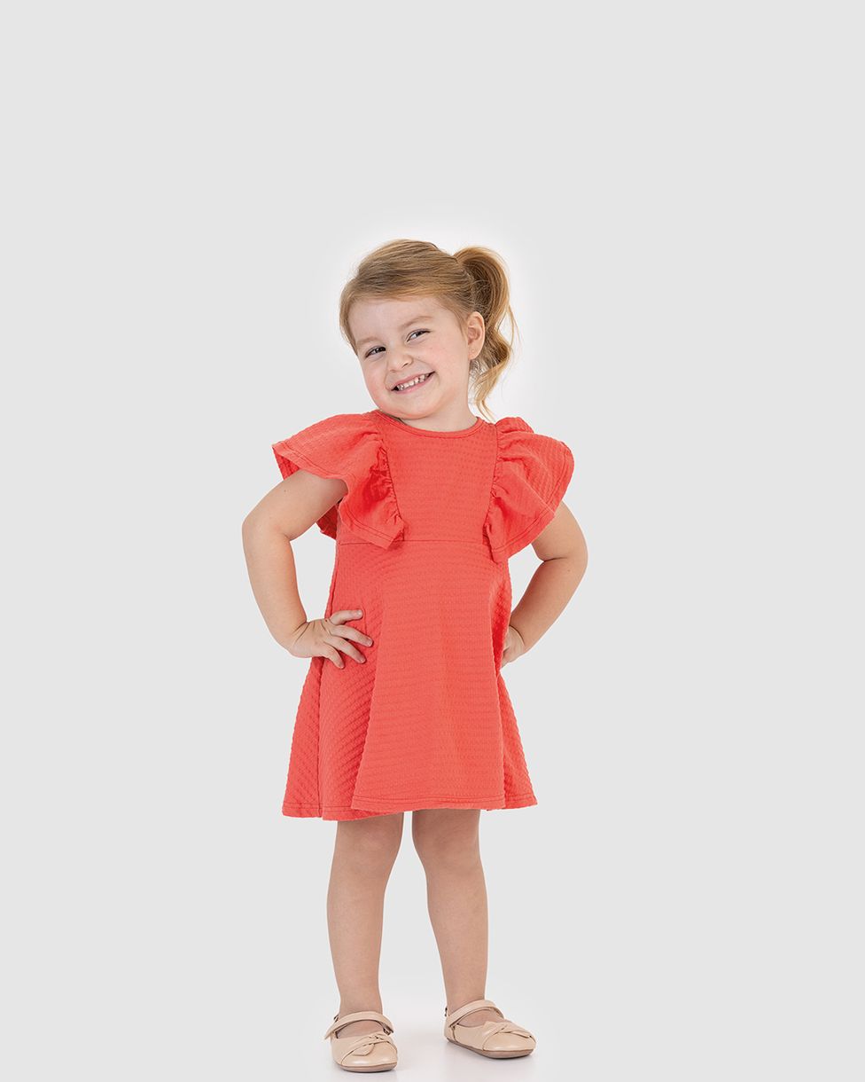 O Vestido Menina Amplo Mangas Com Franzido Em Malha Texturizada oferece charme, praticidade e liberdade para o dia a dia. Sua modelagem soltinha e as mangas franzidas garantem um visual delicado e muito confortável para as meninas.