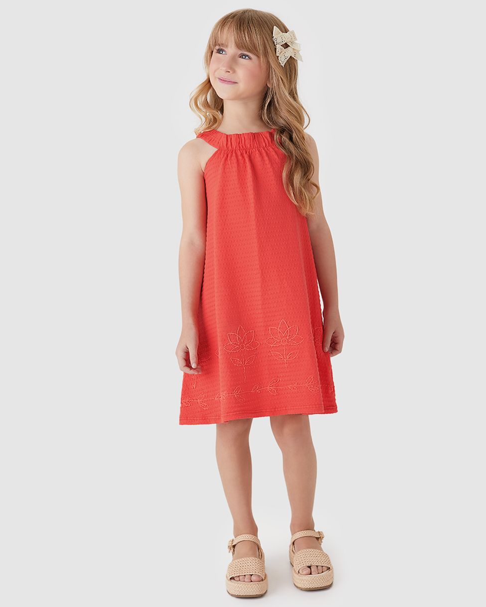 Vestido Menina Barra Estampa Puff Em Malha Texturizada - Carinhoso