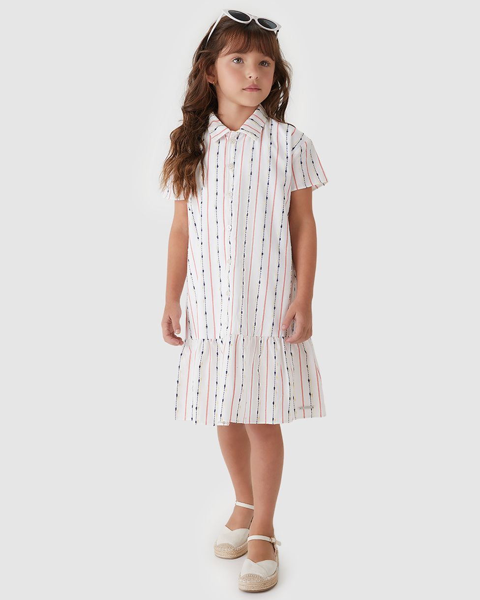 Vestido Menina Chemise Listrado Em Tecido Texturizado - Carinhoso Branco - 10