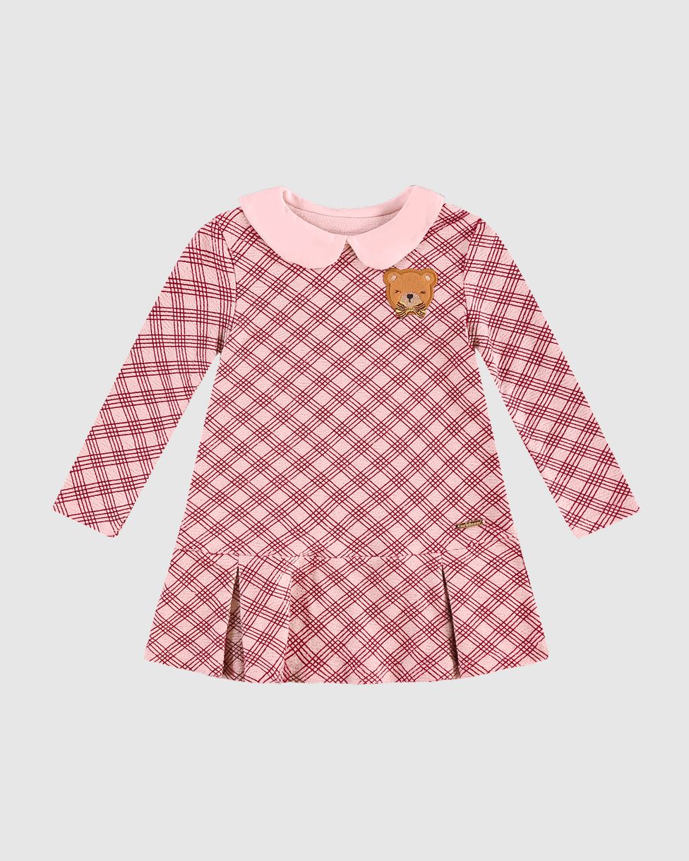 Vestido Menina Com Gola E Aplique Bordado Em Algodão - Carinhoso