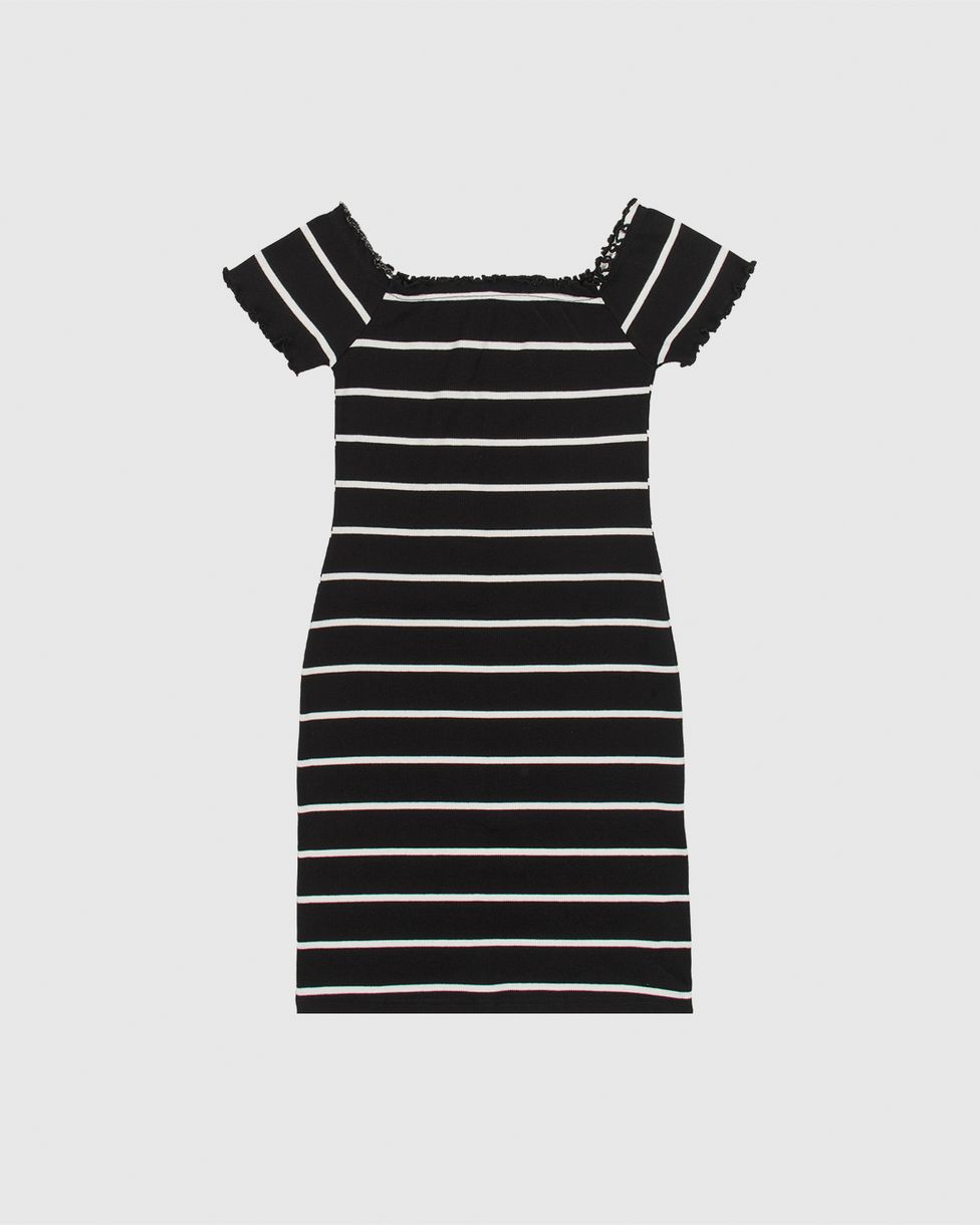 Vestido Menina Decote Ombro A Ombro Em Ribana Listrada Malwee Kids Preto - 12