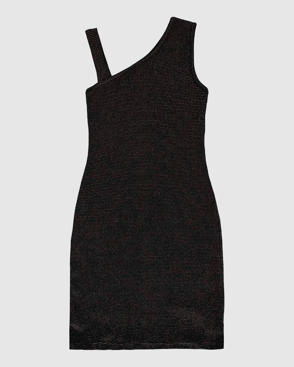 Vestido Menina Decote Ombro Só + Alça Em Malha Canelada Lurex Malwee Kids