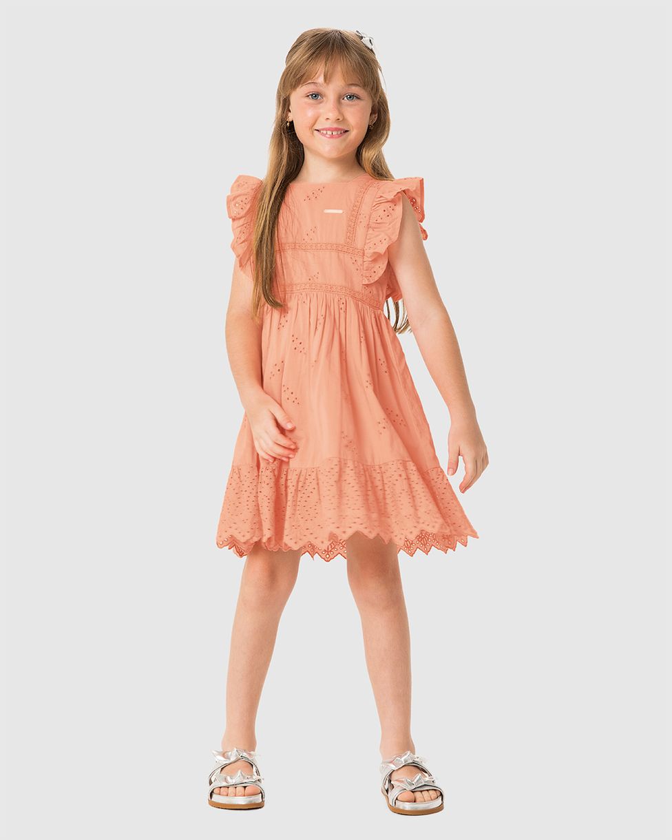 Vestido Menina Decote Quadrado Detalhe Babado Em Laise - Carinhoso