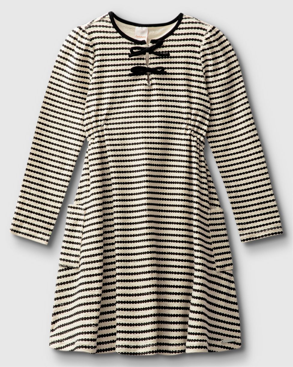 Vestido Menina Detalhe Laço Bolso Lateral Em Malha Texturizada - Carinhoso