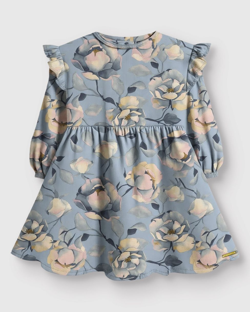O Vestido Menina Floral Rosas Babado Franzido Ombro Em Algodão da Carinhoso é a escolha ideal para um visual romântico e delicado. Com uma estampa floral de rosas encantadora, este modelo curto rodado em algodão oferece leveza e movimento para as garotas brilharem no Outono Inverno.