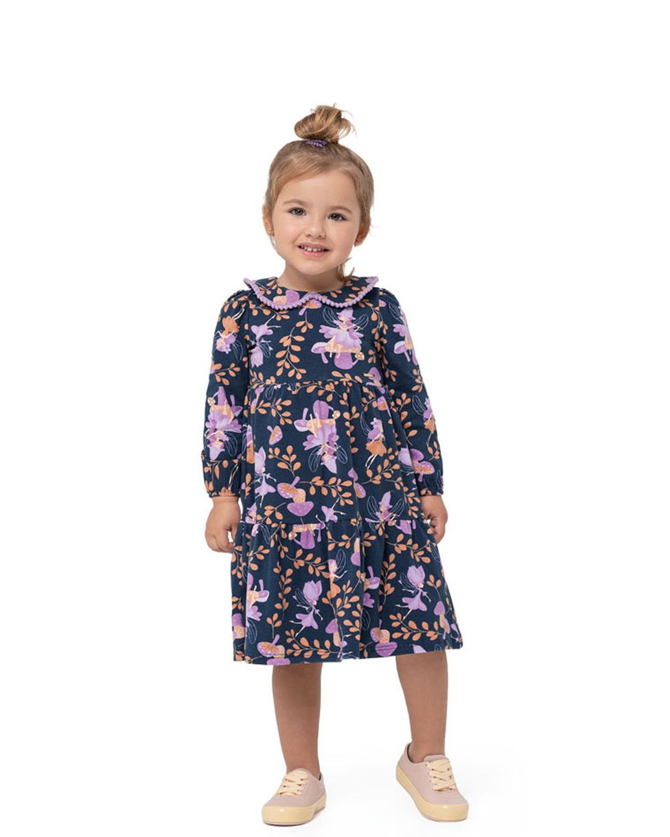 Vestido Menina Gola Peter Pan Fadas Em Algodão Carinhoso