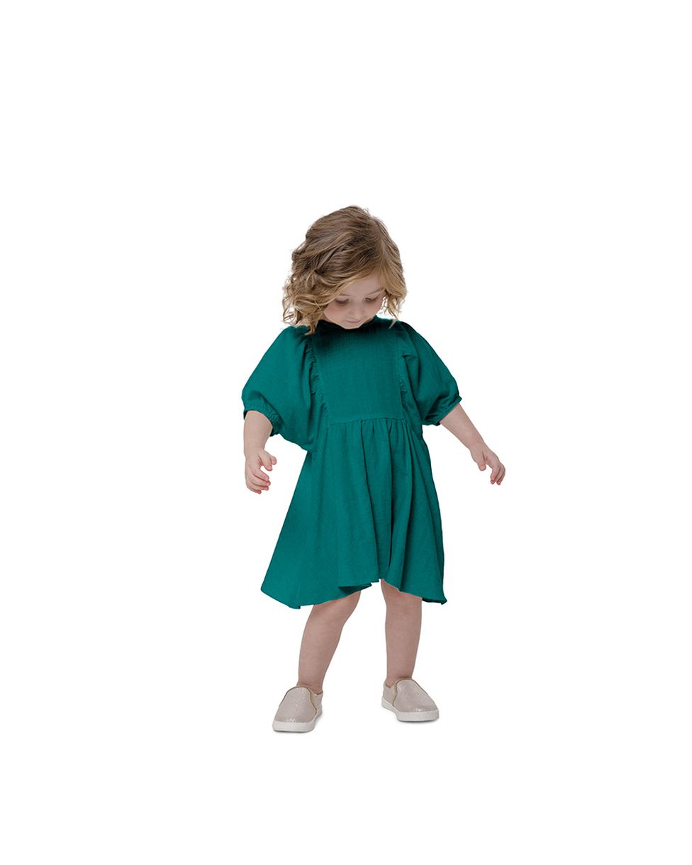 Vestido Menina Manga 2/3 Com Volume Em Viscolinho Carinhoso