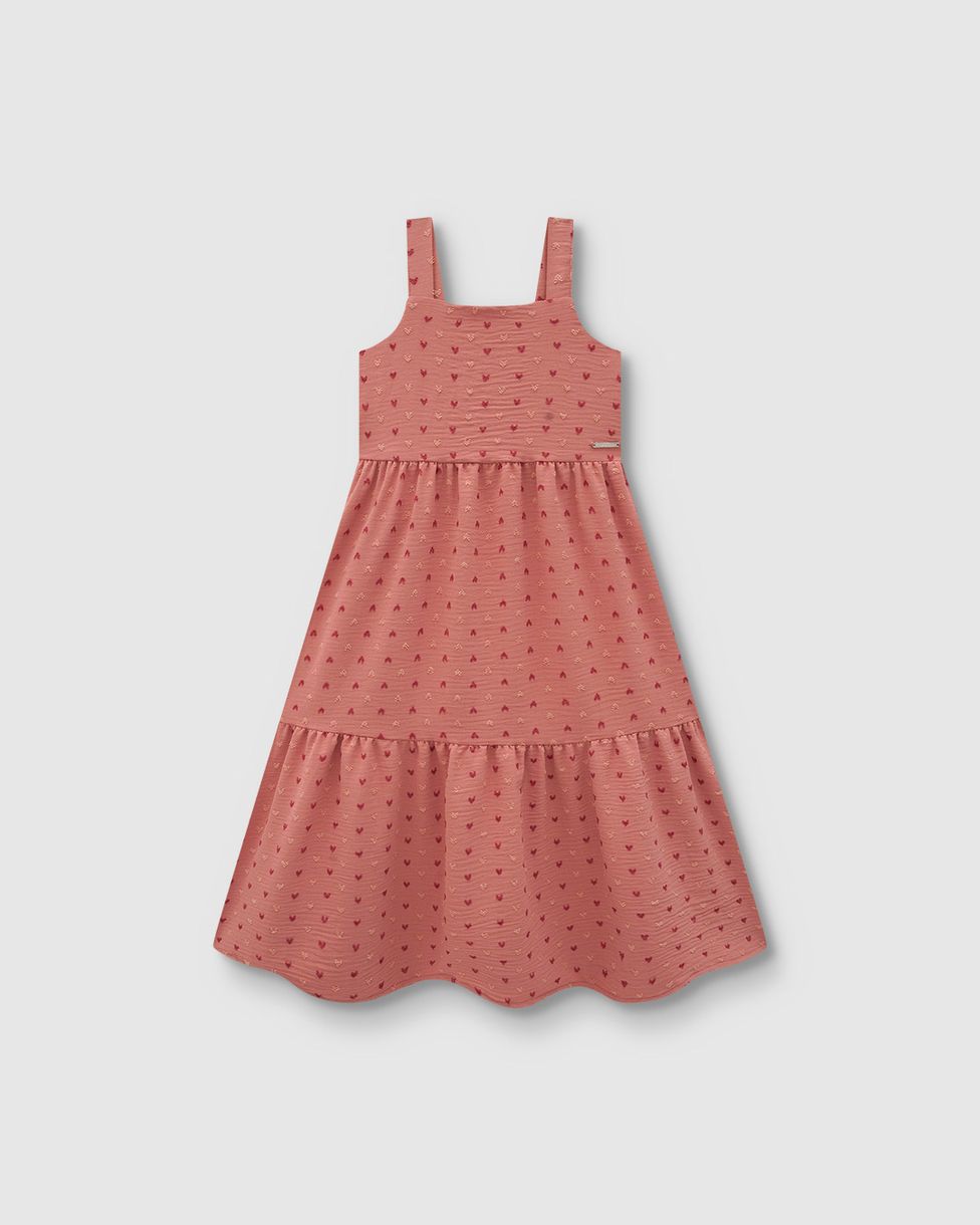 Vestido Menina Midi Decote Quadrado Em Plumetis Coração - Carinhoso