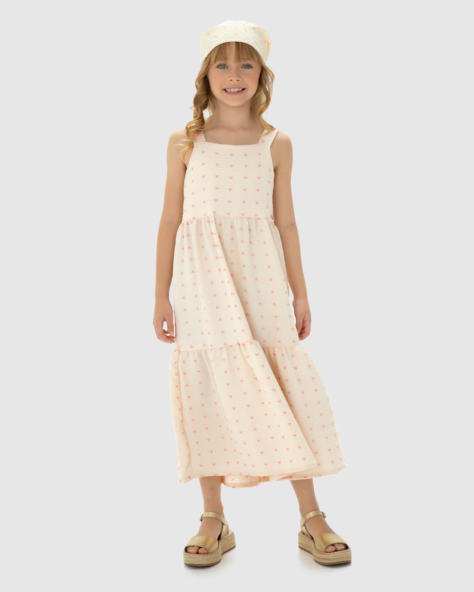 Vestido Menina Midi Decote Quadrado Em Plumetis Coração - Carinhoso