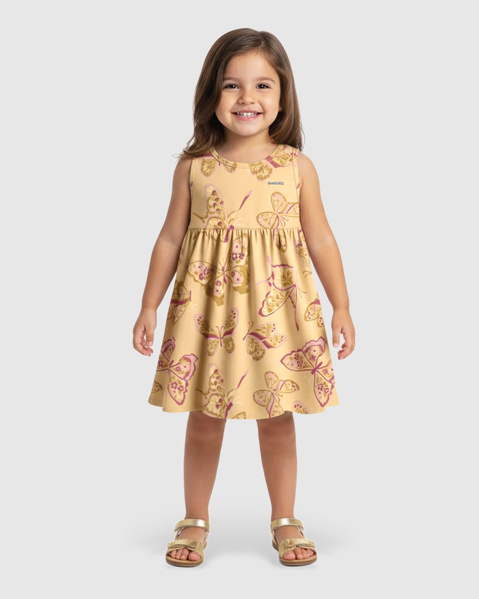 Vestido Menina Rodado Estampa Borboleta Em Algodão - Carinhoso