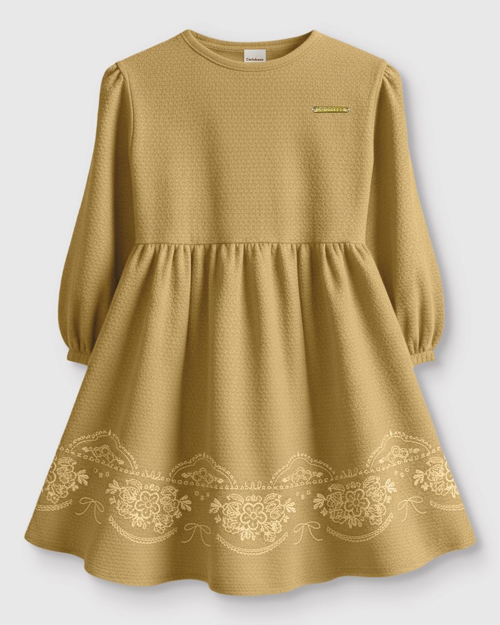 Vestido Menina Rodado Manga Longa Estampa Puff Malha Texturizada - Carinhoso