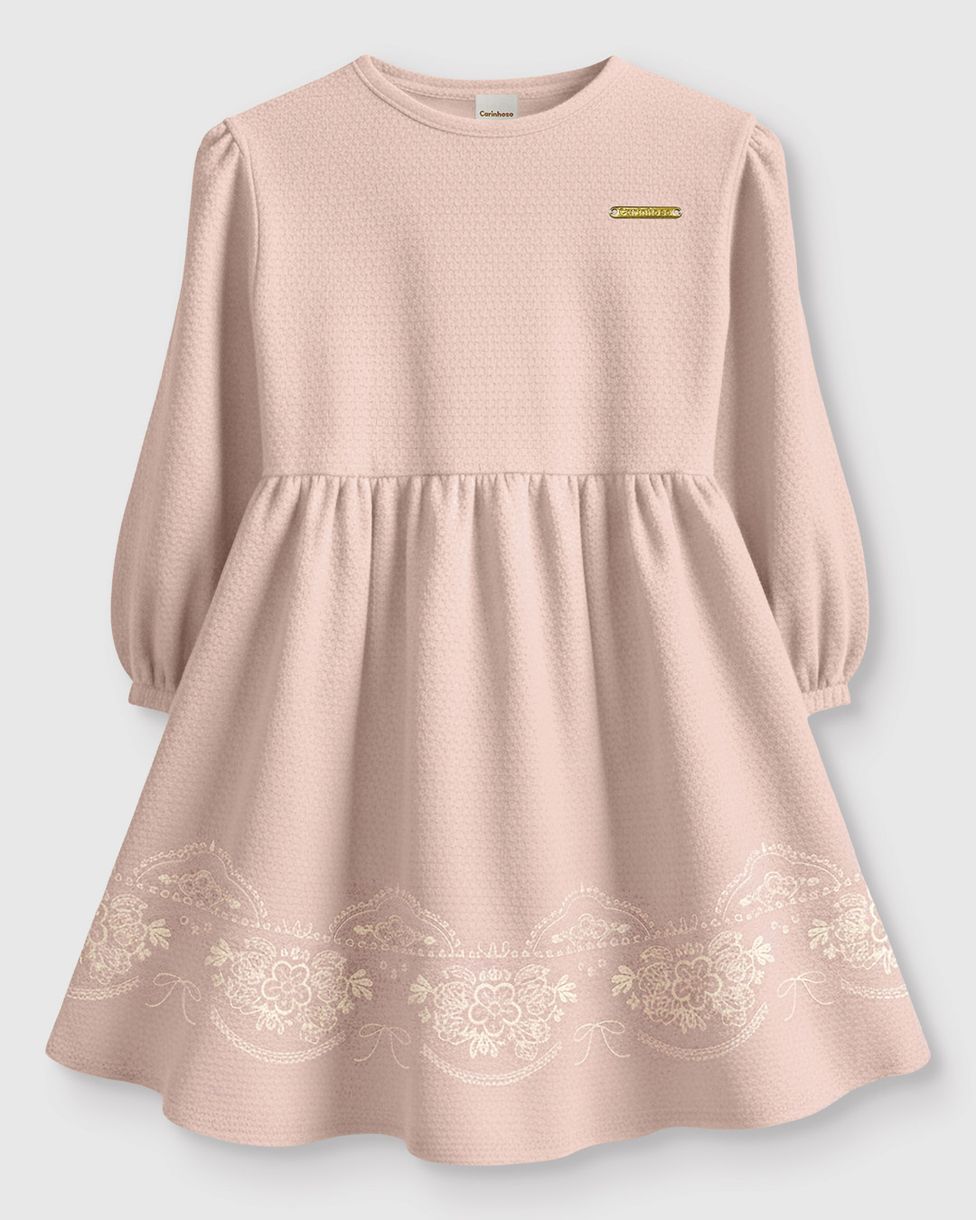 Vestido Menina Rodado Manga Longa Estampa Puff Malha Texturizada - Carinhoso