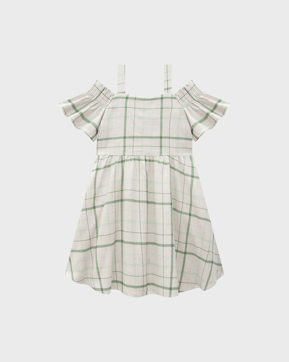 Vestido Menina Xadrez Alça E Manga Lastex Em Viscolinho - Carinhoso