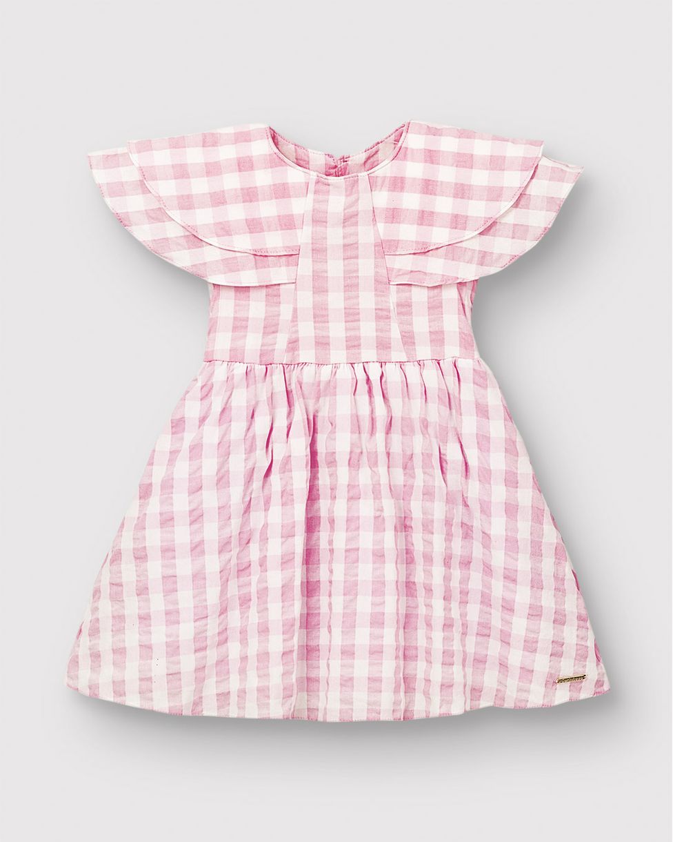 Vestido Menina Xadrez Babado Godê Em Algodão Enrugado - Carinhoso