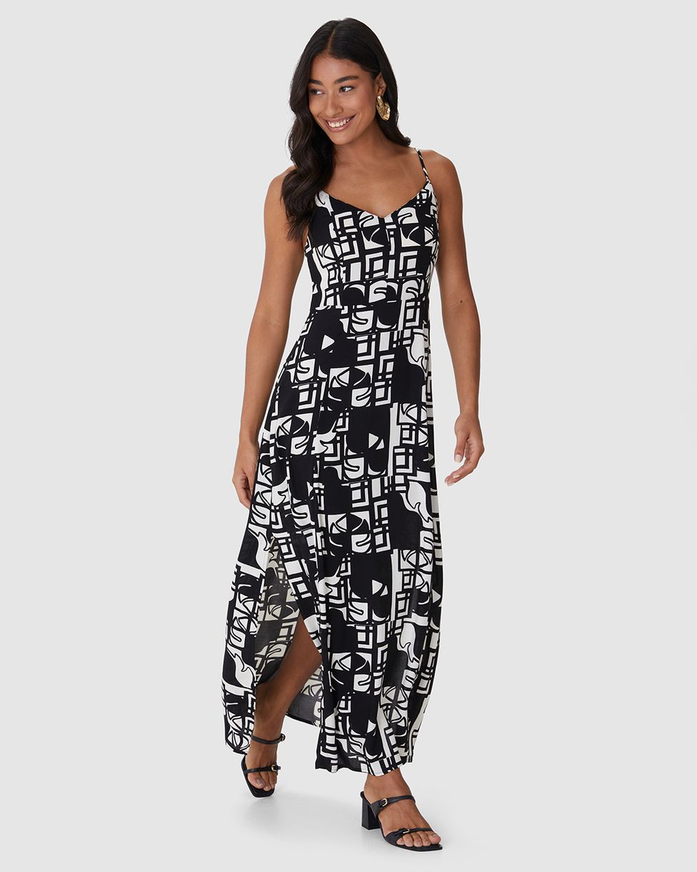 Vestido Midi Feminino Alça Fina Detalhe Fenda Lateral Em Viscose