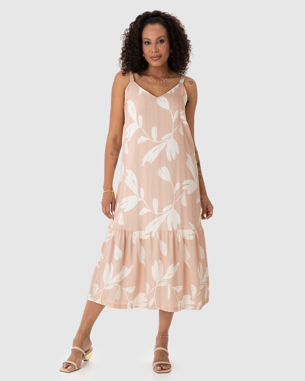 Vestido Midi Feminino Alça Regulável Em Viscose Lurex