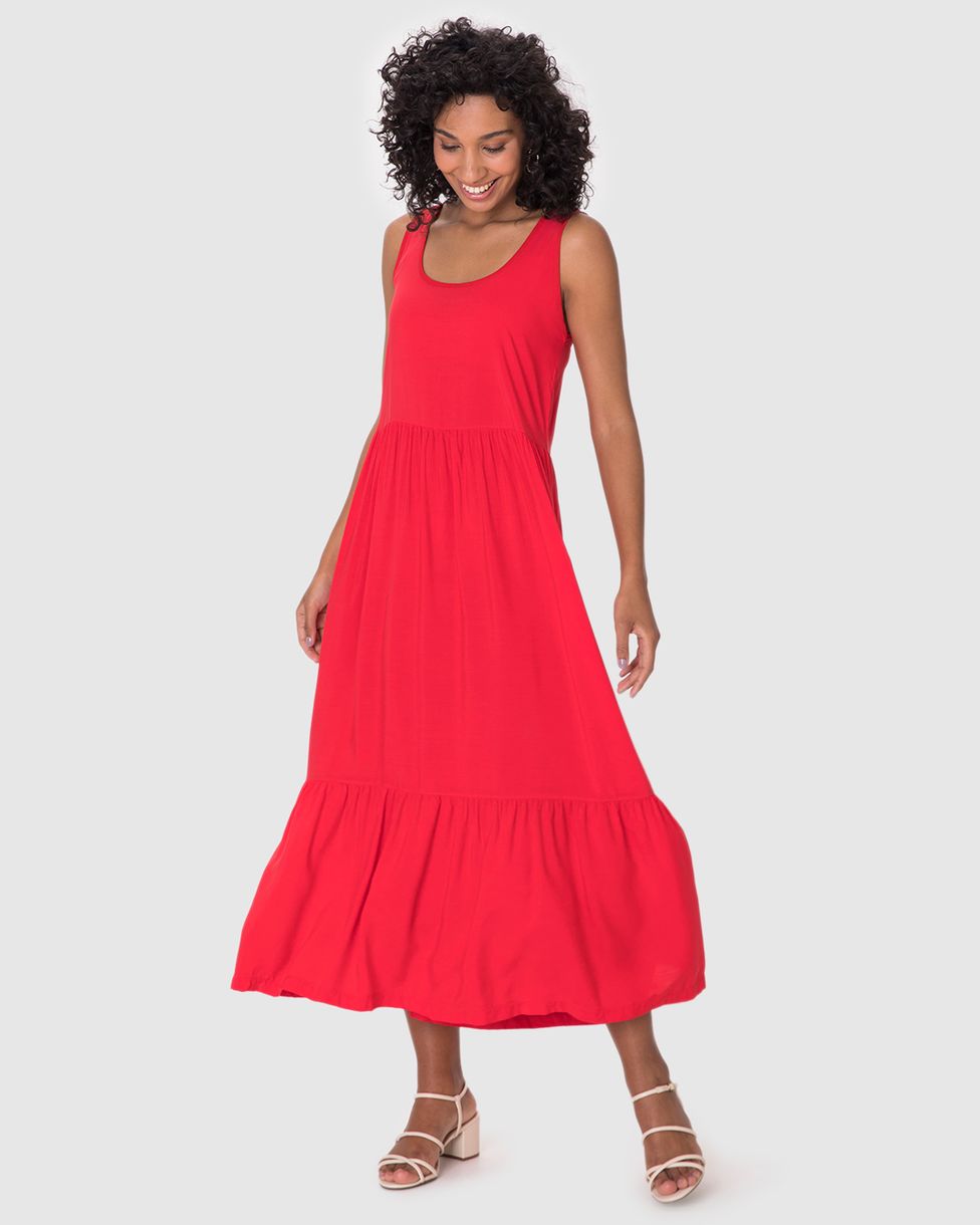 Vestido Midi Feminino Amplo Decote Quadrado Em Viscose