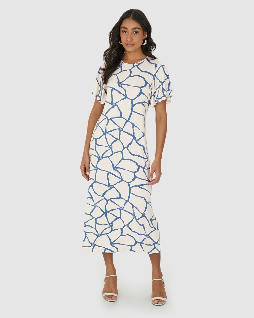 Vestido Midi Feminino Amplo Estampado Em Malha Viscolinho Stretch