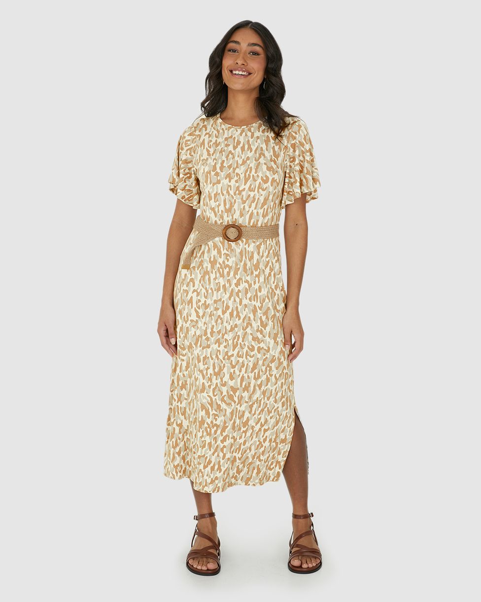 Vestido Midi Feminino Amplo Estampado Em Malha Viscolinho Stretch