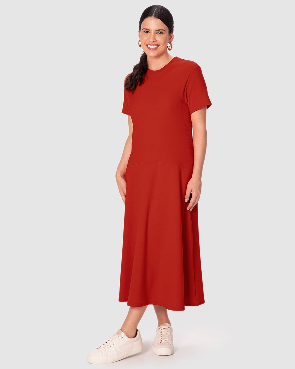 Vestido Midi Feminino Amplo Recorte Frontal Em Malha Canelada Texturizada Vermelho - P