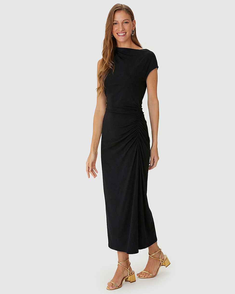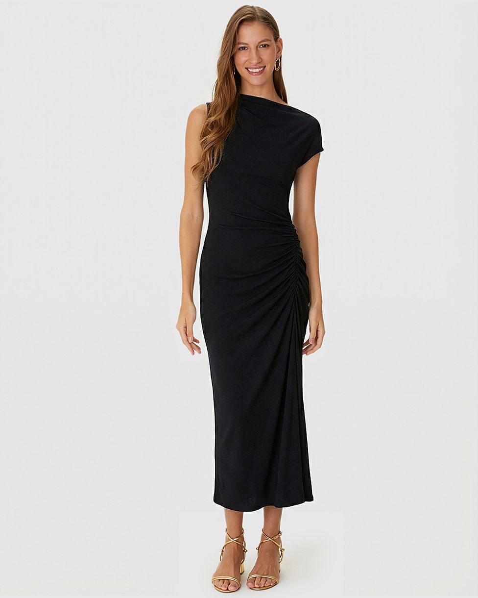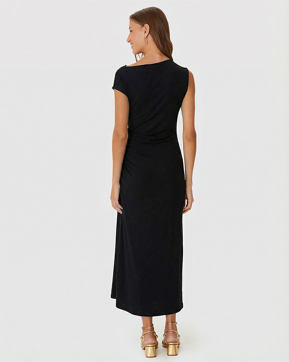 Vestido Midi Feminino Assimétrico Em Malha Viscose Stretch