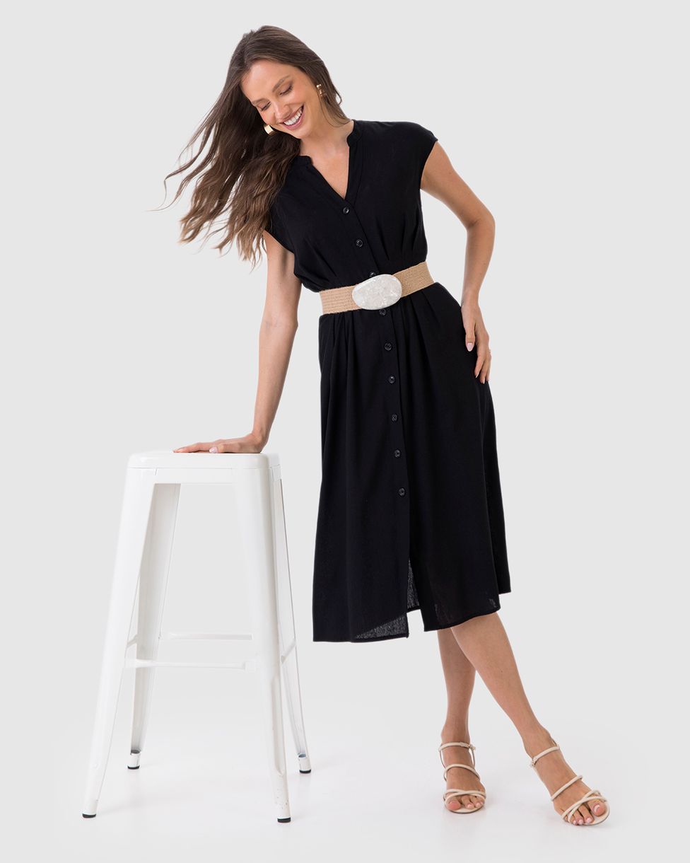 Vestido Midi Feminino Chemise Abotoamento Frontal Em Viscolinho