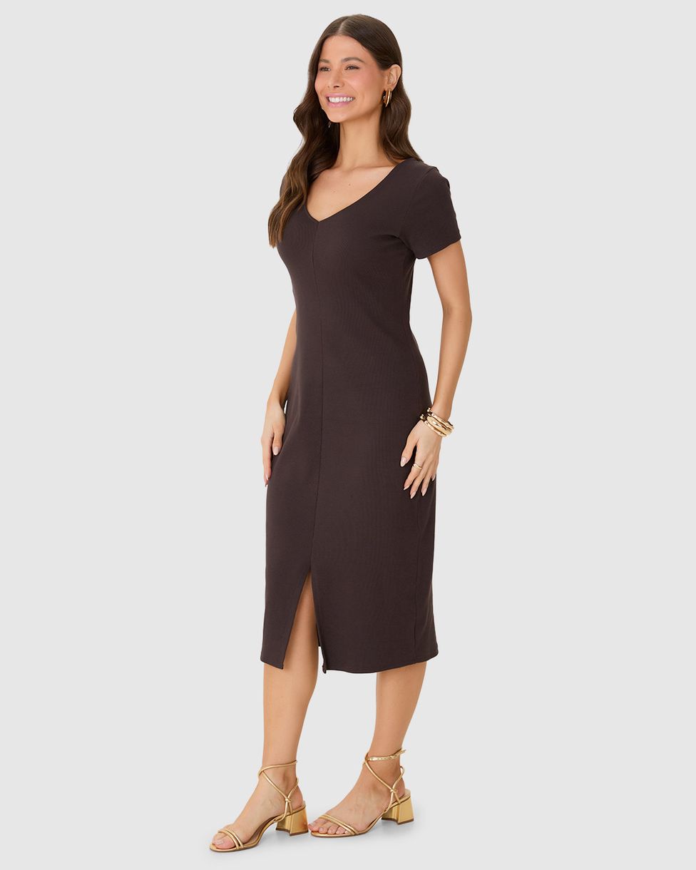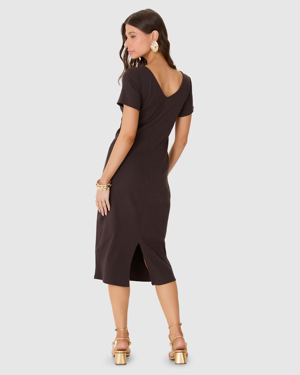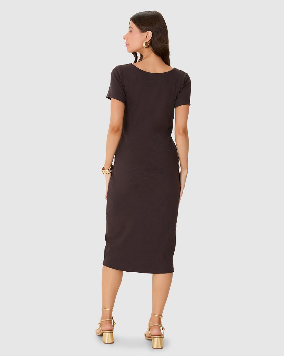 Vestido Midi Feminino Detalhe Fenda Duas Formas De Uso Em Ribana Marrom - G