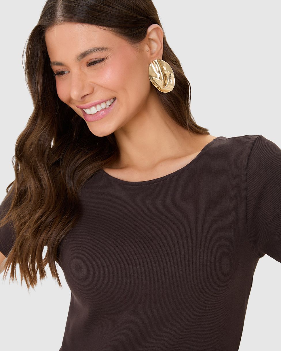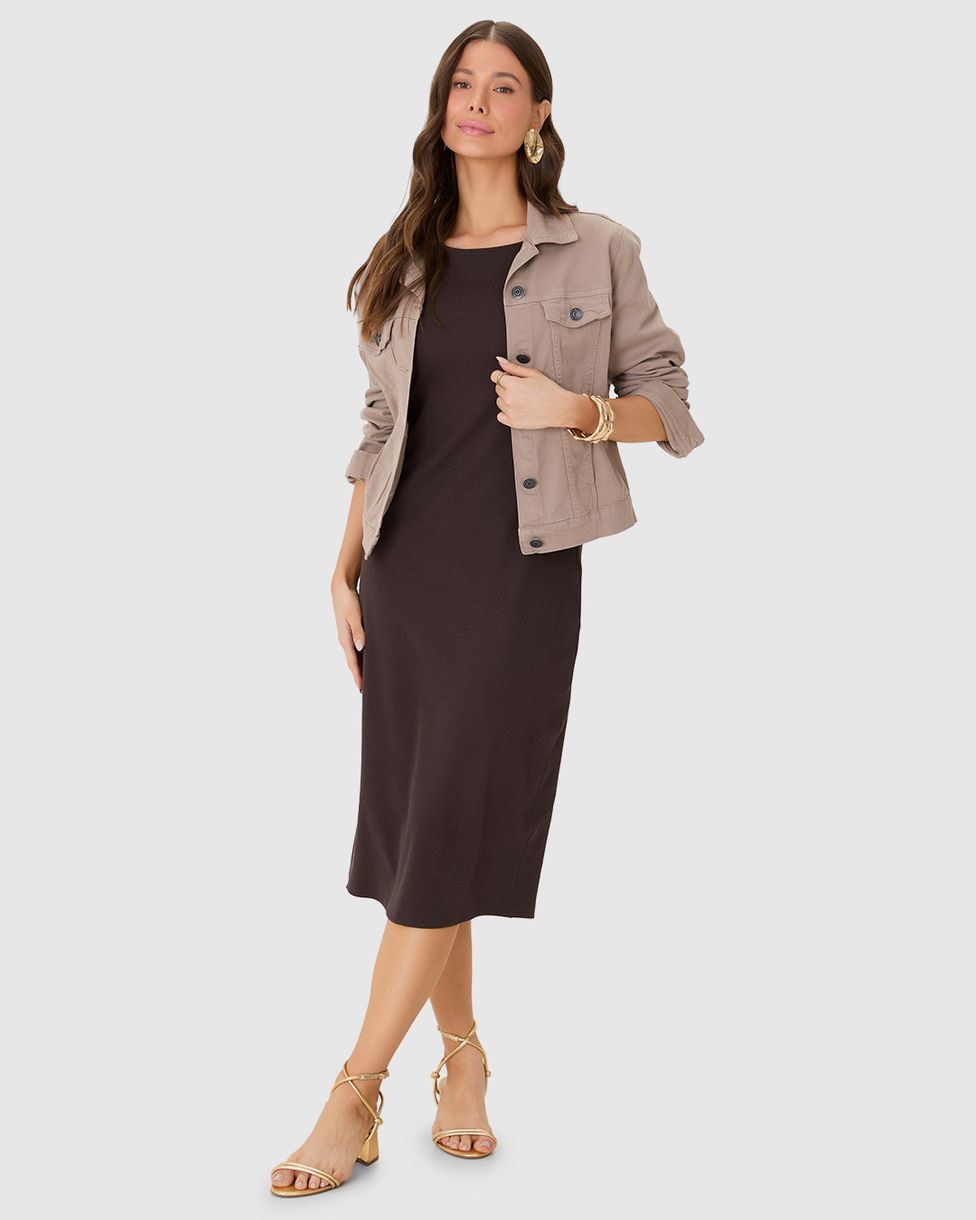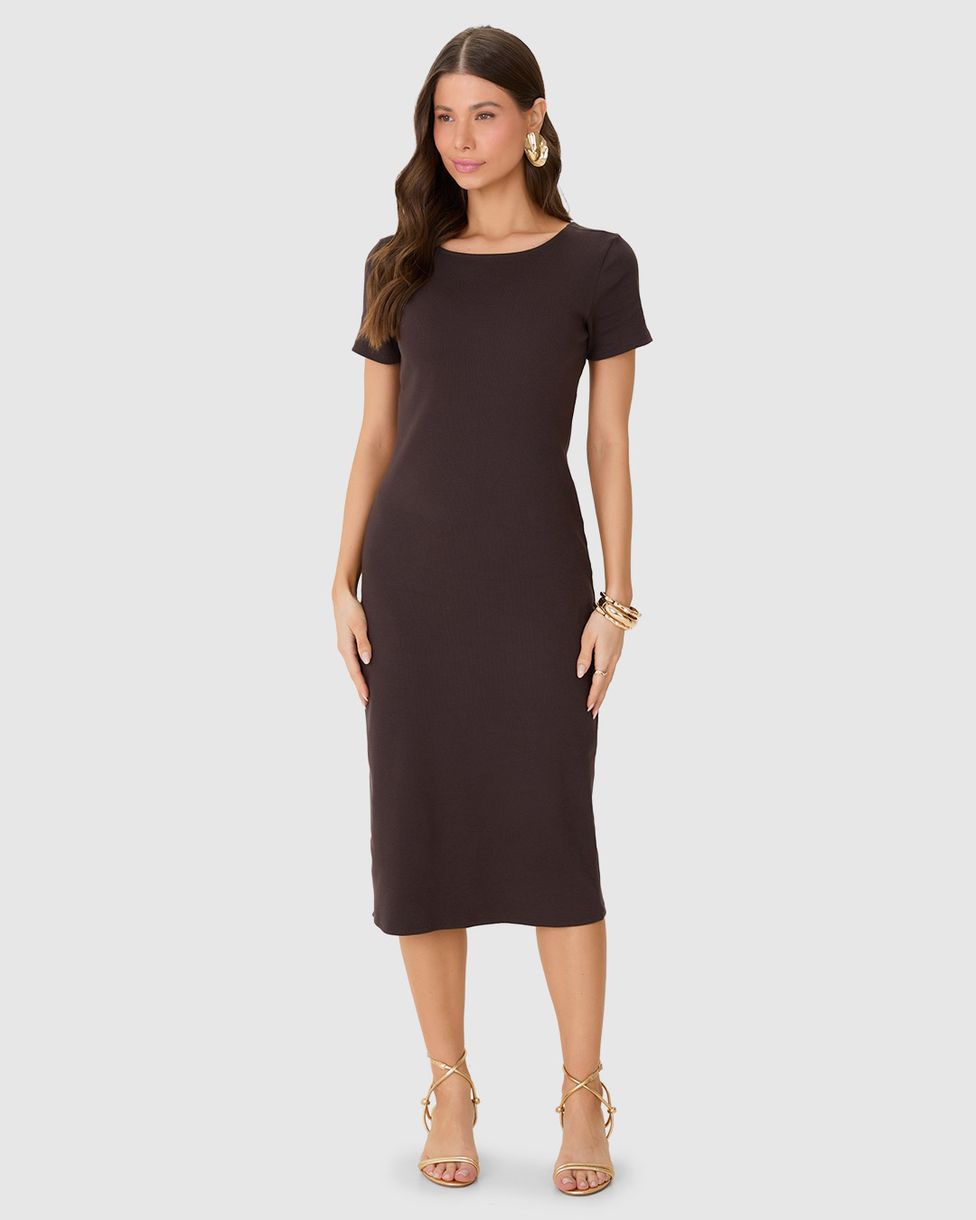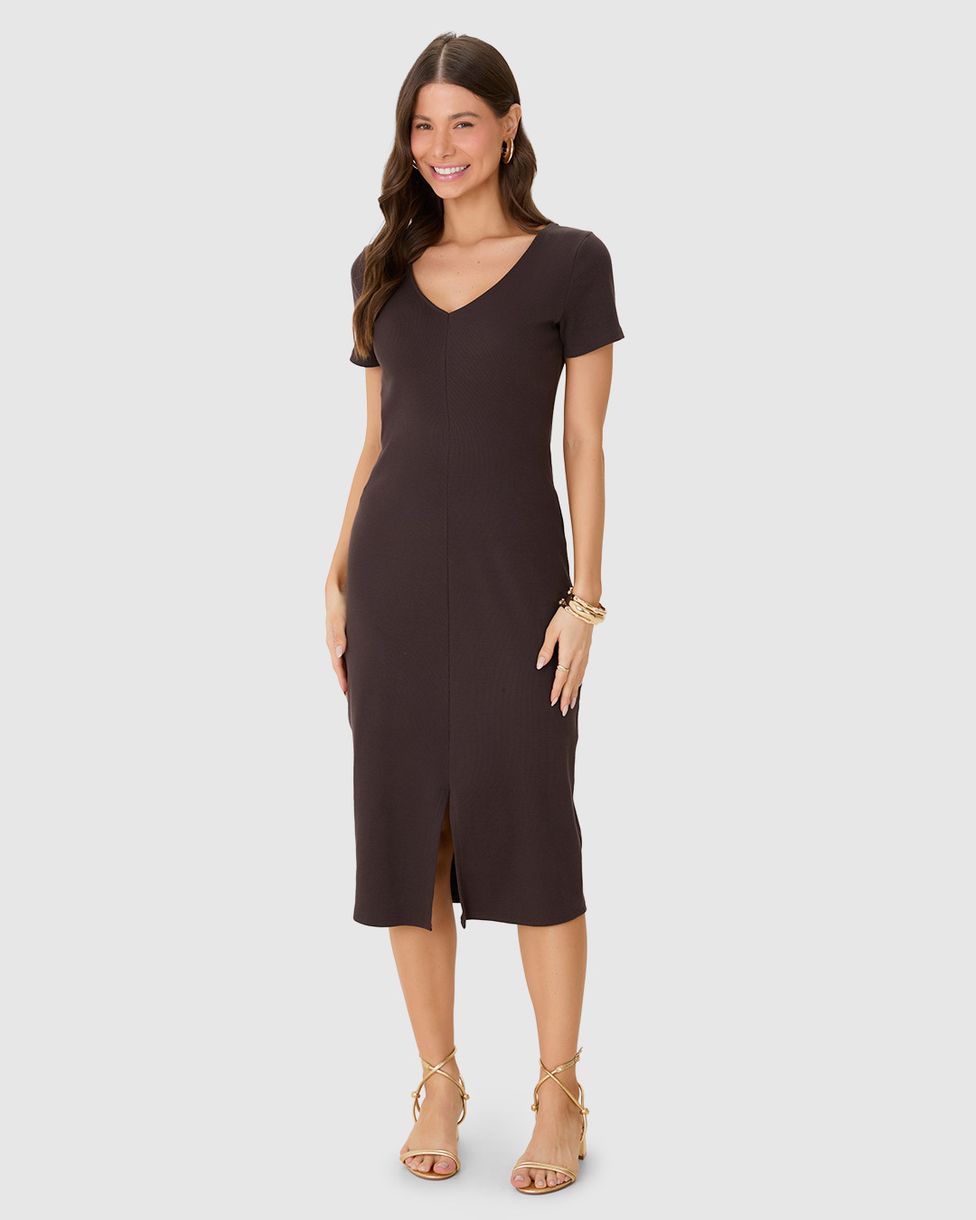 Vestido Midi Feminino Detalhe Fenda Duas Formas De Uso Em Ribana Marrom - G