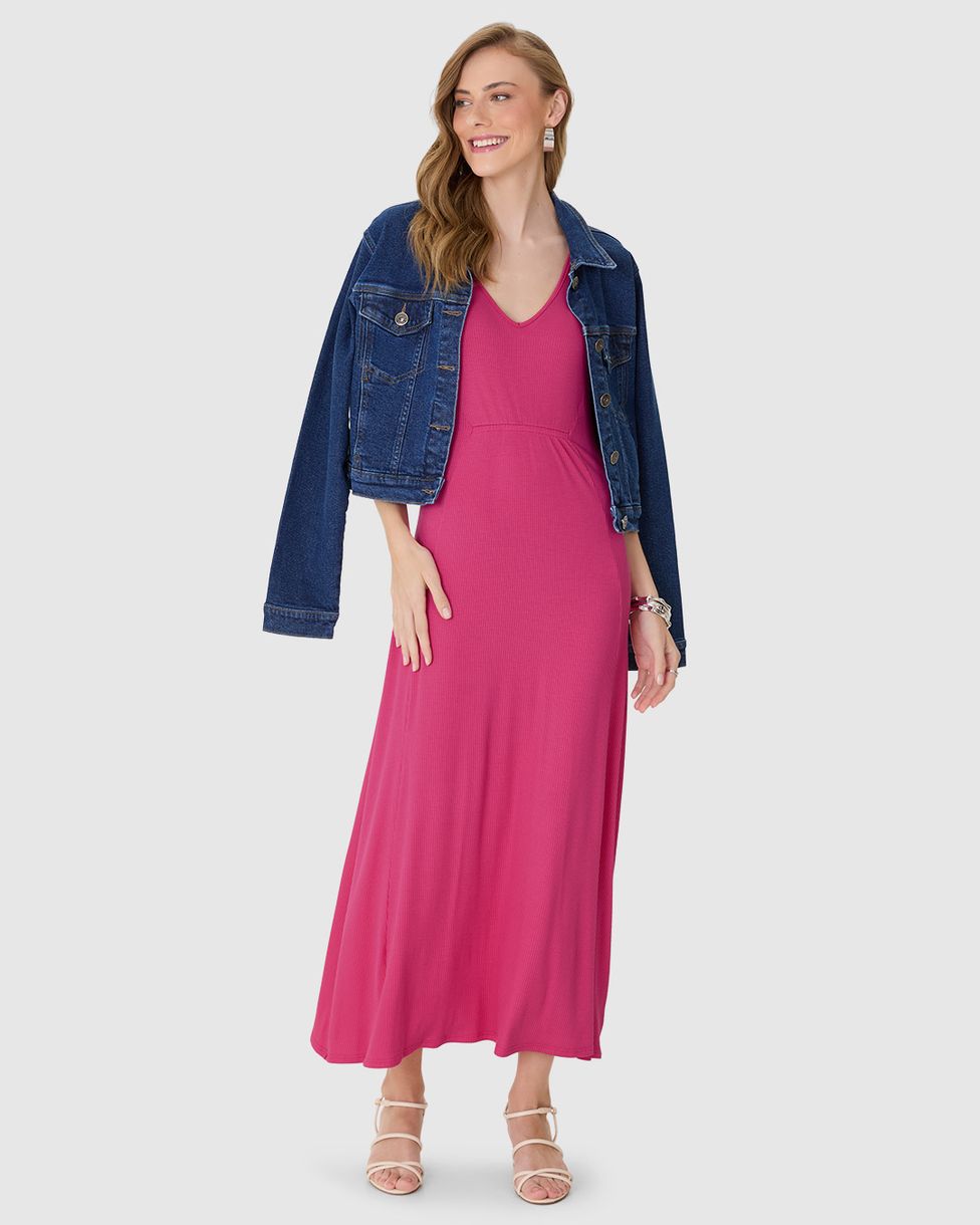 • Vestido feminino em malha viscose canelada