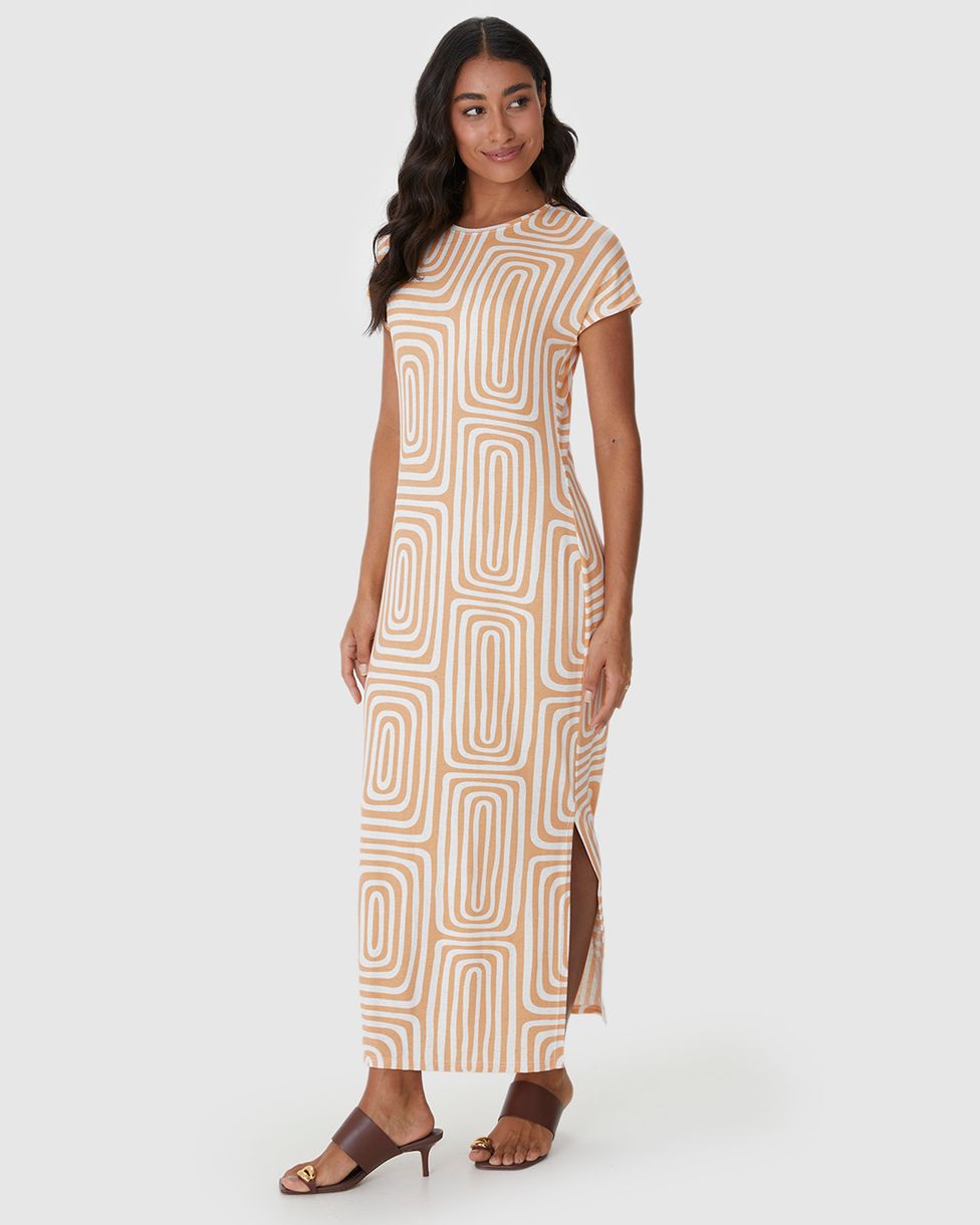 Vestido Midi Feminino Fenda Lateral Em Malha Viscolinho Stretch