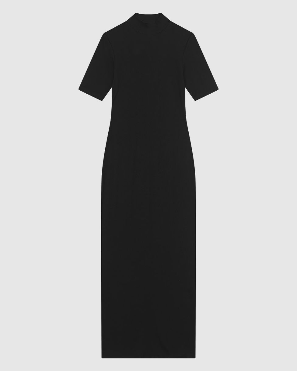 Vestido Midi Feminino Gola Alta Fenda Costas Em Ribana Canelada - ENFIM
