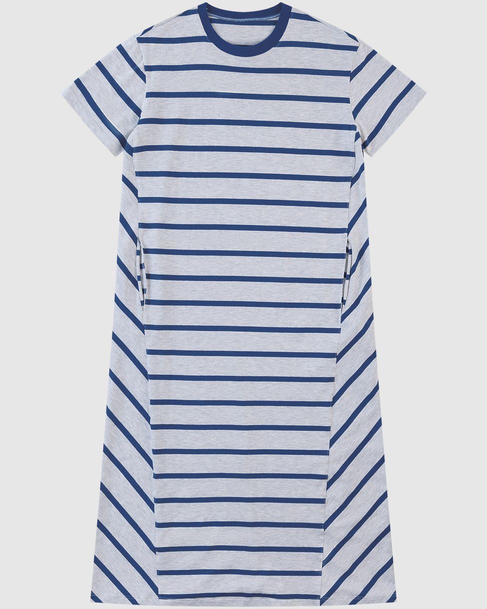 Vestido Midi Feminino Listrado Bolso Funcional Em Malha Algodão