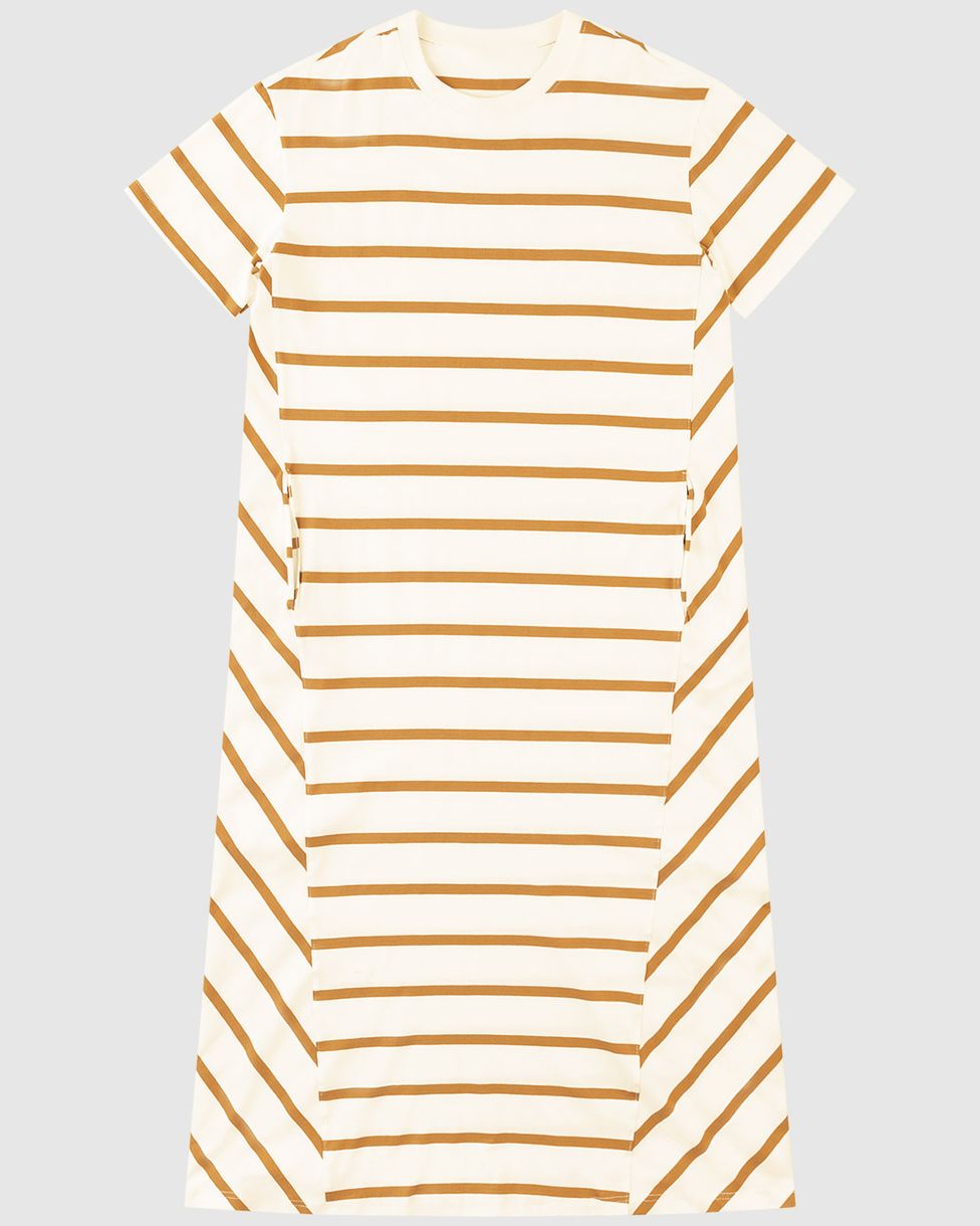 FemininoVestidosVestidos MidiVestido Midi Feminino Listrado Bolso Funcional Em Malha Algodão