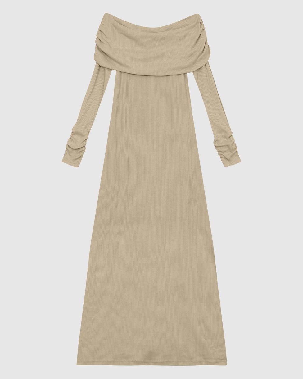 Vestido Midi Feminino Ombro A Ombro Manga Longa Em Tricô Jacquard - ENFIM