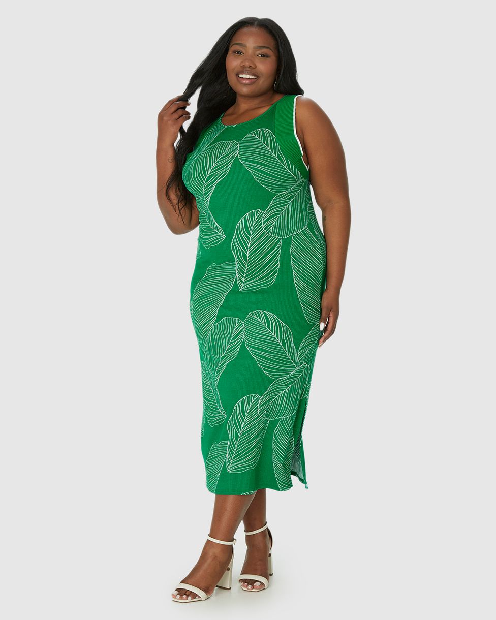 Vestido Midi Feminino Plus Size Reto Em Malha Viscose Canelada