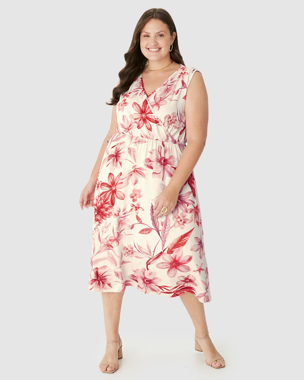 Vestido Midi Feminino Plus Size Transpassado Decote V Em Viscose Stretch