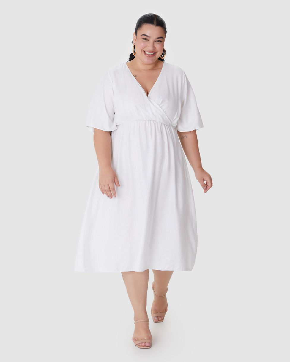 Vestido Midi Feminino Plus Size Transpassado Em Viscose Lurex