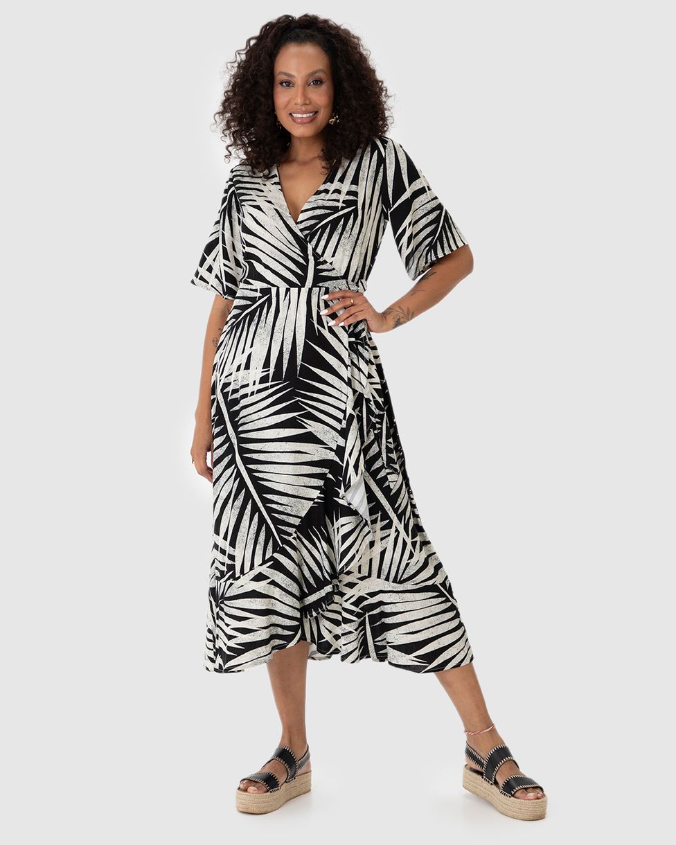Vestido Midi Feminino Transpassado Amarração Funcional Em Viscolinho