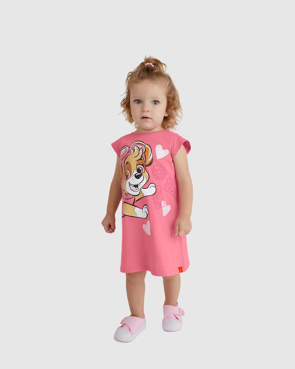 Vestido T-Shirt Infantil Skye Patrulha Canina Estampa Glitter Malwee Kids